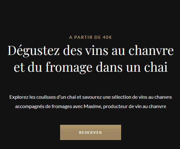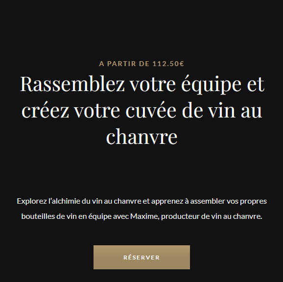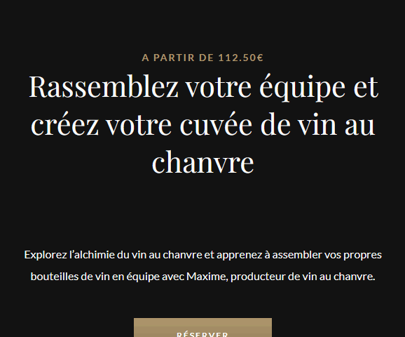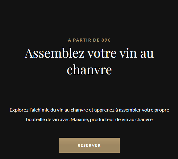 Há um ano que organizo workshops em que as pessoas podem vir à adega para provar as minhas cuvées BRUME (vinho + cânhamo) com queijo ou fazer a sua própria cuvée de cânhamo - misturam, engarrafam, rolham, enceram e saem com a garrafa que fizeram!